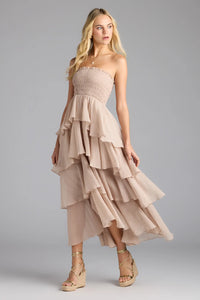 Breezy As Can Be Strapless Ruffled Midi Dress