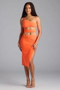 Turn Up The Heat One-Shoulder Cutout Midi Dress