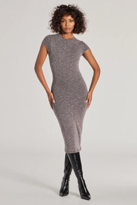Every girl needs this basic ribbed knit midi dress in her line up! The dress features a classic crew neckline and short sleeves perfect for layering with a sweater or jacket and a form-hugging fit.