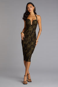 Midi dresses strike that sweet spot between chic and effortless—perfect for brunch with the girls, date night plans, or showing up wedding-guest ready. From flowy A-line silhouettes to curve-hugging bodycon styles, these fits flatter in all the right places. Discover midis with open-back halters, strapless, corset, and bustier bodices that bring the allure, while luxe fabrics like silky satin, mesh with floral prints, and buttery-soft knits keep it elevated. Modern details like ruching, cutouts, and twisted necklines make every midi post-worthy and unforgettable.