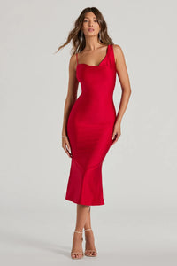Matilda One-Shoulder Slit Midi Satin Formal Dress