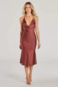 Remarkable Appeal Cowl Halter A-Line Midi Dress