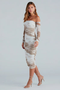 Living A Dream Marble Off-The-Shoulder Midi Dress