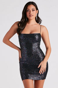 Do you speak the language of sparkle? This shimmering beauty of a dress is perfect for you! The sequins dress features a sleeveless square neck, bungee spaghetti straps, an open back with lattice straps, and a form-hugging, short-length hem. Complete the look with statement earrings and heels!