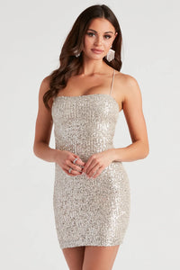 Give off a gorgeous sparkle in this illuminating sequin mini dress! It features a sleeveless square neckline, bungee spaghetti straps, an alluring open back with a criss-cross strappy design, and a short, curve-hugging silhouette. The lined mesh fabric features all-over sequin embroidery. Complete the look with clear heels.