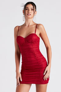 Twinkle all night in this glistening glitter short dress at the holiday cocktail party! The dress features a sleeveless sweetheart neck, adjustable spaghetti straps, a built-in padded bust with underwire support, and all-over ruched seams along the bodycon silhouette. The dress is composed of a glitter mesh-lined fabric with minimal stretch. Complete the look in platform heels for a chic style!