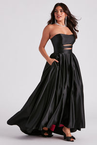 Prepare to wow the crowd by making your grand entrance in the Beverly ball gown and have all eyes on you! Designed in a flattering A-line silhouette with a cutout bodice design and hidden side pockets for keeping your phone or lip gloss in during photos.