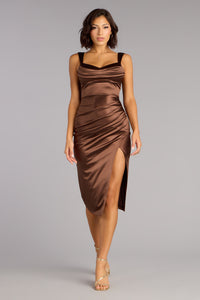 Krissy Satin Bodycon Formal Midi Dress
