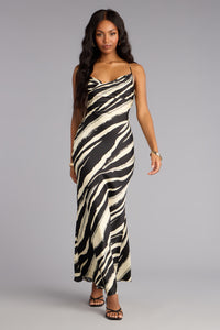 This dress understands the assignment. The glossy satin drape, sultry cowl neckline, and chain strap accent bring full glam energy, while the lace-up back keeps it flirty and unexpected. Perfect for nights out, fancy dinners, or anywhere you plan to turn heads.