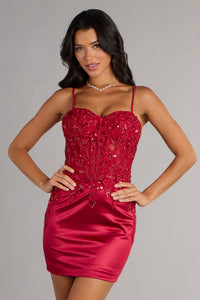 Make It Bling Satin Rhinestone Corset Mini Dress