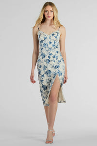 Looking like a botanical beauty has never been so flawless as having this floral satin midi dress in your arsenal! Perfect for showers, graduations, or elegant afternoon teas, this pretty dress is such a dream. With a sweetheart neckline and eyelash lace trim, this dress flatters your figure with adjustable spaghetti straps and padded bra cups. The front slit and midi-length hem add a touch of allure to the floral garden print, all in a luxurious satin fabric. Complete the look in strappy block heels.