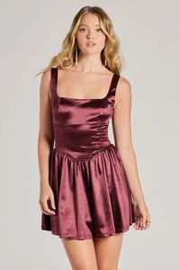 Captivating Charm Sleeveless Tie Back Satin Skater Dress