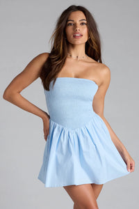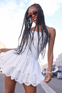 Always Sunny Strapless Ruffle Eyelet Mini Dress