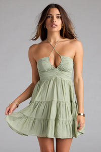 This breezy mini dress will inspire you to book a vacay somewhere sunny with an ocean view! With a flattering halter neckline and playful ruffled skater silhouette, this dress is perfect for any getaway.