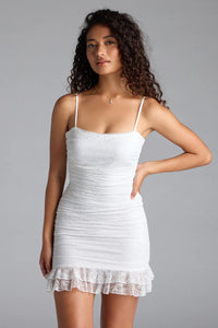 Life Is Sweet Eyelet Bodycon Ruffle Mini Dress