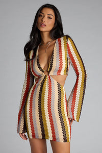 Groovy Gal Striped Cutout Mini Dress