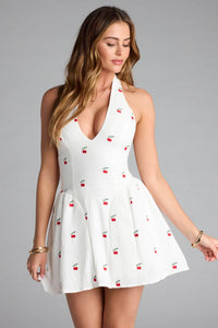 Vacay Booked Halter Skater Mini Dress