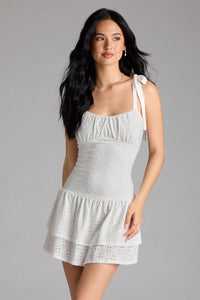 This eyelet mini dress is perfect for any sunny day and will be a favorite for shower celebrations, brunch, or graduations! The dress boasts a stretchy smocked bodice that hugs your figure while the ruffled mini-length hem adds a flirty allure.