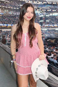 Please, please, please envision how sweet you'll look in this gingham ruffle skater dress! Boasting a head-turning open back and flattering mini-length hem perf for pairing with boots!