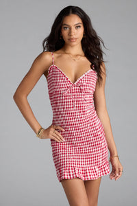 You love all things girly, so this adorable gingham print mini dress is perfect for you. The all-over smocked design adds stretch, while the ruffled neck and hem bring the cutesy vibe.