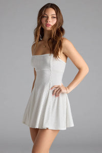 Always make a classy entrance in the Audrey formal party dress at semi-formal and dressy events. The short dress showcases a strapless sweetheart neckline leading to a fitted bodice with a chic drop waist seam while the skater silhouette flatters your figure. Complete the look with earrings and block heels.