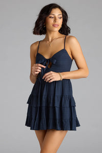 So Effortless Tie-Front Ruffled Skater Dress