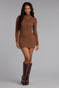 Keep your look playful and unexpected. This sweater mini dress keeps it sleek in the front, daring in the back. The cable knit keeps it cozy while the open back brings a hint of drama. perfect for fall slays.