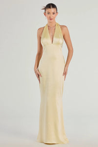 Hallie Satin Sleeveless Halter Mermaid Dress