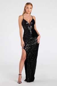 Dare to dazzle in the Bethany sequin formal dress that'll leave everyone breathless! Made to accentuate your figure in a bodycon silhouette, this long dress delivers sultry style with a lace-up back and a high slit for a show of leg.