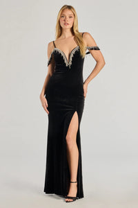Torrie Velvet Rhinestone High-Slit Mermaid Dress