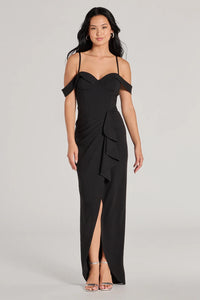 Bridget Off-The-Shoulder Slim Crepe Formal Dress