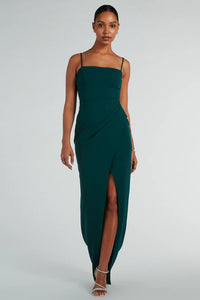 You'll be a showstopper in the Christie crepe formal dress as a stunning bridesmaid or wedding guest! Her slim-sleek silhouette, square neckline, and spaghetti straps exude elegance, while the crepe fabric adds a polished touch. The wrap-high front slit and long-length hem complete the look, making you the envy of every event. Finish the look with block heels and dainty jewelry.