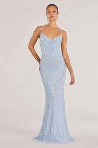 Gorgeously intricate, the Elodie formal dress is crafted with sheer floral lace fabric with lining and glamorous sequin and beaded embroidery for a luxe look. It features a sleeveless V-neckline with a padded bust, adjustable spaghetti straps to find your customized fit, and a floor-sweeping mermaid silhouette accented with a high-cut front slit.