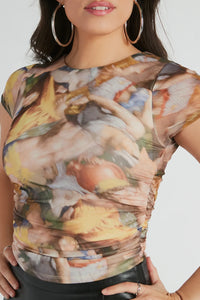 Angel Looks Short Sleeve Printed Mesh Crop Top