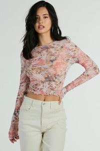 Wild Flowers Long Sleeve Floral Mesh Crop Top