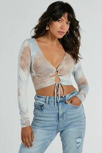 Tie Dye Cutie Lace-Up Long Sleeve Crop Top