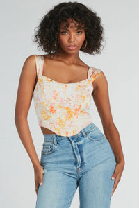 Spring is in full bloom with this floral satin corset top to romance your favorite jeans or skirts! The sleeveless square neckline and wide shoulder straps provide a flattering fit, while the flexible boning gives added structure and snatching. The cropped hem and lace-up back add a touch of sultry sophistication, while the painted floral print on the satin fabric adds an artsy allure. Style with best-selling bottoms and cute mules for any occasion!
