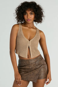 This crochet vest will have you dreaming of Western vibes for your festival or concert outfit! Made from a lightweight crochet fabric, this vest is perfect for adding a boho touch to any outfit. The V-neckline and hidden front closures add a touch of intrigue, while the cropped length keeps things fun and flirty. Complete the look in shorts and cowboy boots.