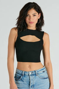 This crop top is basically the one you'll be obsessed with all summer! Crafted from stretchy ribbed knit fabric, this sassy top features a crew neckline and a flirty cutout bust leading to the cropped hem that flaunts your figure. Complete the look in new jeans.