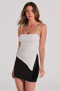 Channel a trendy vibe with your casual 'fits in this asymmetric knit top! Made with a stretchy ribbed knit fabric, it features a sleeveless square neckline, spaghetti straps, an asymmetric mid-length hem for a cool look, and a form-hugging fit. Style with a mini skirt and sneakers.