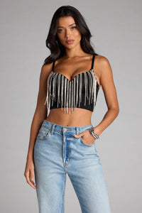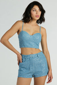 Feeling Flirty Sequin Glitter Denim Bustier Top