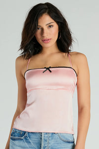 Cute Mentality Lace-Up Satin Cami Tank Top