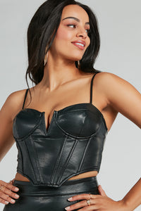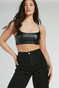 If the moment calls for this faux leather bralette, you must deliver! Perfect for festivals, concerts, and styling under your favorite oversized top or jacket, this bralette features a scoop neckline and adjustable spaghetti straps for a perfect fit and a fitted comfortable hem. Complete the look in an oversized jacket and mini skirt!