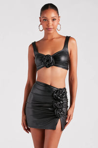 Shop Matching Bottom: Make It Bloom Faux Leather Rosette Mini Skirt