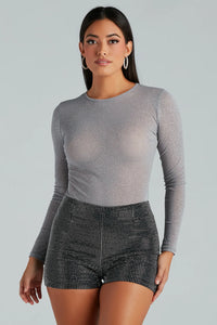 Center Stage Glitter Mesh Long Sleeve Bodysuit
