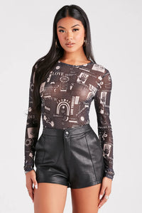 Must Be Fate Mesh Celestial Newsprint Bodysuit