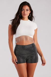 Flaunt Your Shine Rhinestone Fringe Crop Top