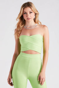 You'll be making jaws drop tonight in this bandage tube top perfect for rooftop bars! It features a strapless neckline with non-slip grip lining, a wrap-style bodice, and a fitted crop hem. The pants are designed from a bandage-seamless knit fabric that fits like a glove! Complete the look with matching bottoms.