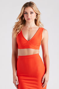 Meet your match! This bandage crop top is the style you'll be obsessed with all season. It features a sleeveless plunge V-neckline, tank shoulder straps, a square low-cut back, and underbust seam detail. The crop top is designed from a bandage-seamless knit fabric that fits like a glove. Complete the look with the matching bottoms for a Miami vacation or club night!