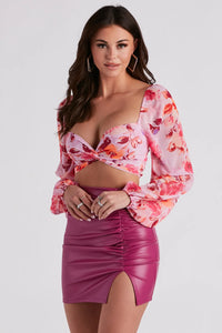 Bloom with beauty in this alluring floral crop top! It features a sweetheart neckline with a twist-front design, long balloon sleeves, a smocked back design, and a fitted, cropped hem. The airy chiffon fabric features a pretty floral print pattern. Style with a mini skirt and strappy mules for a spring date night!